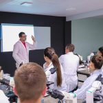 O encerramento contou com minicursos práticos, nos quais os alunos puderam vivenciar situações reais da rotina veterinária, como o funcionamento do batimento cardíaco e arritmias (prof. Helton), interrupção e prevenção de ataques caninos (equipe K9), boas práticas em estágios e plantões (prof. Diego), análise de sêmen bovino (prof. Rodrigo) e aplicações da laserterapia (prof. Karine).