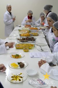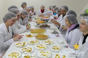 Acadêmicos do 5º Período de Nutrição da Faculdade Campo Real, elaboraram preparações com o intuito de resgatar e despertar o interesse para os alimentos regionais.  A atividade foi desenvolvida na disciplina de Educação Nutricional, sob orientação da Professora Patrícia Chiconatto, objetivando favorecer o conhecimento acerca de frutas, hortaliças, leguminosas, tubérculos, cereais, ervas, entre outros existentes em nosso país.  O tema da aula está em consonância com ações de promoção práticas alimentares adequadas e saudáveis do Ministério da Saúde, que por meio da Coordenação- Geral de Alimentação e Nutrição (CGPAN) recentemente lançou o livro “Alimentos Regionais Brasileiros”. O material educativo busca estimular o desenvolvimento e a troca de habilidades culinárias, resgatando e valorizando o ato de cozinhar e apreciar os alimentos, seus sabores, aromas e suas apresentações, tornando o momento de comer mais prazeroso.
