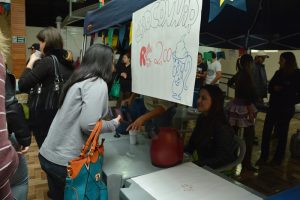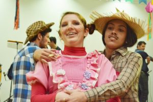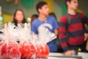 A já tradicional festa junina da instituição contou com a participação de acadêmicos, familiares, funcionários e professores no Espaço de Convivência localizado na Unidade I. Com barracas com os tradicionais doces típicos, espetinhos, quentão, cachorros quentes, pastéis, pipocas, canjica, bolos e crepes, não teve quem não saísse satisfeito. “Nós vendemos praticamente tudo o que trouxemos. Foi muito boa a aceitação”, contou Camila Silvestri, acadêmica de Nutrição que juntamente com seus colegas vendeu crepes, cri-cri, maças do amor, quentão e inovaram com o correio eletrônico.