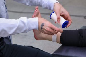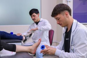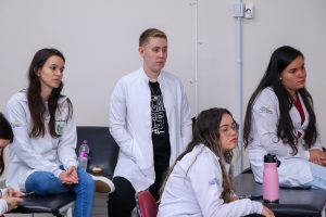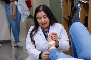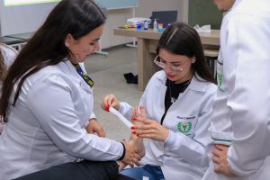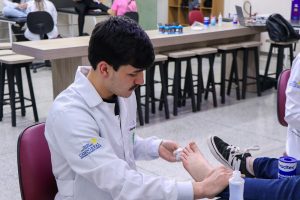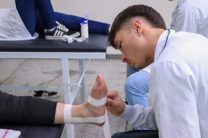 Durante a atividade, os acadêmicos aprenderam sobre as principais aplicações da bandagem, que incluem oferecer estabilidade às articulações, restringir movimentos que possam causar dor ou agravar lesões e auxiliar na recuperação de atletas e pacientes em reabilitação.