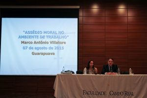 No dia 07, sexta, no Salão Nobre da Faculdade Campo Real, ocorreu a aula inaugural da Pós-graduação em Direito do Trabalho e Previdência Social e do Curso de Direito. Na ocasição, os acadêmicos contaram com a presença do Prof. Dr. Marcos Antônio César Villatore, com a palestra Assédio Moral no Direito do Trabalho e também com a participação do Prof. Mestre Cleverson José Gusso.