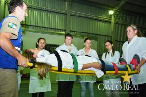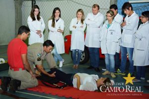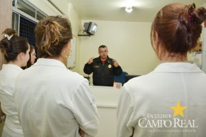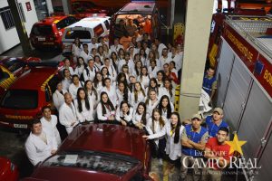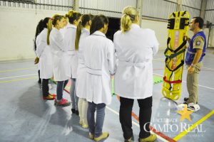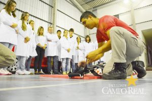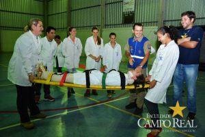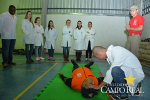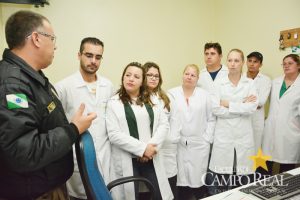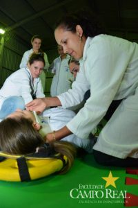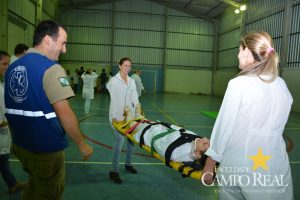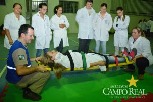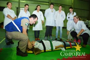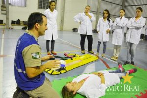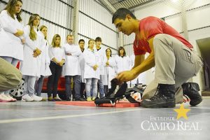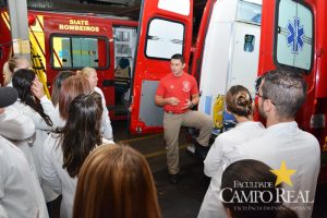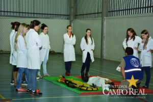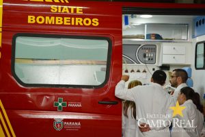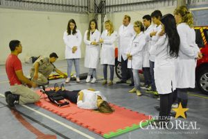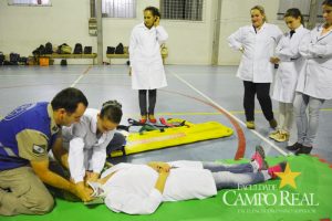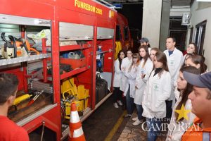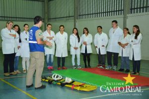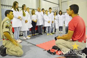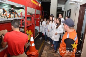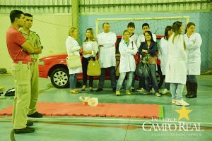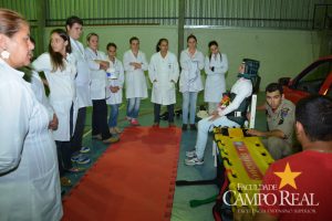 Mais de 80 acadêmicos dos cursos de Biomedicina e Enfermagem da Faculdade Campo Real, participaram de simulações de atendimento de socorristas no quartel do 5º Subgrupamento de Bombeiros Independente em Guarapuava. “Tivemos uma verdadeira aula prática de como agirmos em situações onde cada ação nossa pode ser crucial para salvar uma ou mais vidas”, conta a acadêmica do 5º período de Biomedicina Patrícia Laís Sbardelotto.
