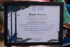 A trajetória de 25 anos do Centro Universitário Campo Real ganhou mais um importante reconhecimento. A instituição recebeu, com alegria e orgulho, a Menção Honrosa e Votos de Congratulações da Assembleia Legislativa do Paraná, entregues pela deputada estadual Cristina Silvestri, parceira histórica da Campo Real e grande apoiadora da educação em Guarapuava e região.
