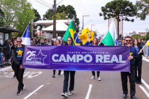 O Centro Universitário Campo Real marcou presença no Desfile Cívico de 7 de Setembro, celebrando a Independência do Brasil com orgulho e entusiasmo. A instituição, representada por alunos, professores e colaboradores, desfilou pelas ruas de Guarapuava, destacando seu compromisso com a educação e o desenvolvimento da comunidade. A participação no desfile reforça o papel ativo da Campo Real na sociedade, sempre promovendo valores de cidadania, respeito e responsabilidade social.
