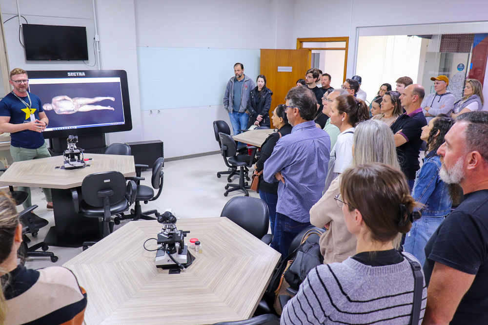 Enquanto os vestibulandos realizavam a prova, os familiares e acompanhantes foram recepcionados com uma programação especial. O momento contou com a apresentação do curso de Medicina, espaço de descanso, visita aos laboratórios e orientações sobre a estrutura da instituição, bolsas e incentivos disponíveis.