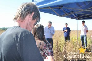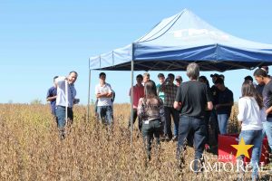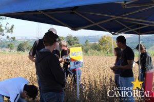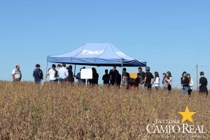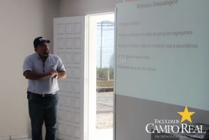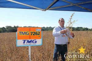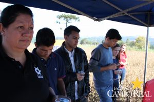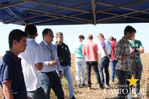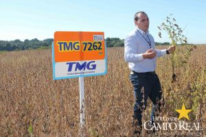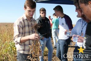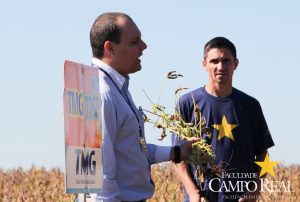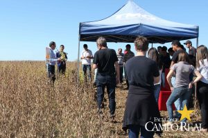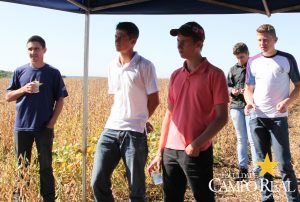 Em parceria com a TMG, no dia 02 de abril de 2015, realizou-se o primeiro mini dia de campo na Fazenda Experimental. O evento contou com a participação maciça dos acadêmicos que estudam no período matutino, além de outros acadêmicos do noturno. Este dia de campo foi dividido em duas partes, uma na sala de aula onde os acadêmicos ouviram a palestra proferida pelo Sr. Adrian Faria, que explanou sobre o programa de melhoramento das culturas de milho, algodão e principalmente de soja. Posteriormente o Sr. Pablo proferiu palestra sobre o portfólio de tecnologias que estão sendo desenvolvidas pela TMG e das perspectivas para o futuro, como a soja resistente à seca, que deverá ser lançada no mercado até 2020. Depois os participantes foram conduzidos ao campo, onde puderam visualizar, comparar e tirar dúvidas sobre assuntos como variedades, tecnologia Inox, tecnologia Intacta e outros assuntos relacionados à cultura. Agradecemos à TMG e seus representantes regionais pela oportunidade e aos acadêmicos pela participação.