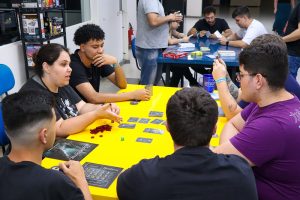 O curso de Engenharia de Software realizou uma Game Night para celebrar o fim do semestre, reunindo alunos e professores em uma noite descontraída. O evento contou com partidas de videogame, pizza e muita interação, proporcionando momentos de lazer e integração entre os participantes. A Game Night foi um sucesso e reforçou o compromisso do curso em promover um ambiente acolhedor e colaborativo para todos.