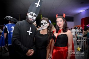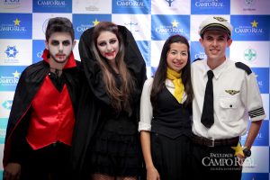 “Legal demais estar aqui com esta festa linda e saber que isso não para. Nossa alegria de agora vai se estender as famílias que receberão os alimentos e isso é incrível. Estou feliz em fazer parte da Campo Real pelo compromisso com a qualidade de ensino que sei que estou tendo e principalmente, pelos valores solidários que vejo acontecendo na prática aqui”, conta Jonatan Bonissoni, calouro do curso de Biomedicina, que com sua namorada Maianna Muzzolan, formaram um casal simpático de vampiros.