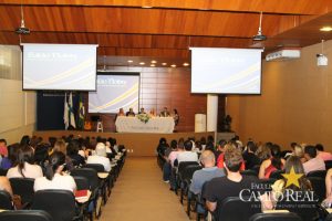 A Faculdade Campo Real reuniu no Salão Nobre, na manha de hoje (13.11), autoridades e diversos membros da área de saúde, segurança e direitos humanos para o I Simpósio Brasileiro sobre Dependências Químicas e Saúde Mental: Desafios e Perspectivas. O objetivo do evento é a troca de saberes em relação à problemática social, cada vez mais grave, da difusão do uso e abuso de substâncias psicoativas e do surgimento de um número cada vez maior de pessoas portadoras de transtornos mentais. Renomados estudiosos nacionais da questão, estiveram hoje discutindo as causas, estratégias de enfrentamento e as políticas públicas sobre estes temas e socializando seus saberes com os participantes.