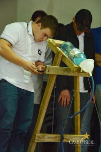 Trabalhando a “engenhoca” a equipe se depara com os cinco fundamentos da Física que são: mecânica, termologia, ótica, ondulatória e eletricidade. “Utilizamos os componentes da física para desenvolvermos o nosso experimento, mas no final das contas é a criatividade que nos motiva mais. Quando tudo dá certo é sinal que seguimos os passos de forma ordenada e a satisfação é grande”, comemora o acadêmico Jean Nilson Prestes.