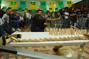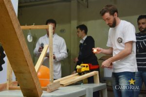 Ao todo foram sete engenhocas criadas pelas equipes do 3º período. Para o acadêmico Luiz Paulo Braun de Freitas, a experiência foi muito válida. “Somos apenas três integrantes na equipe e na verdade fomos meio loucos em abraçarmos este desafio em poucas pessoas, mas conseguimos e isso nos motivou ainda mais. Aprendemos muito com os métodos que utilizamos e concluímos que a física interliga tudo”.