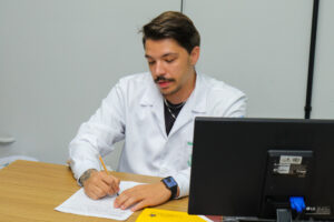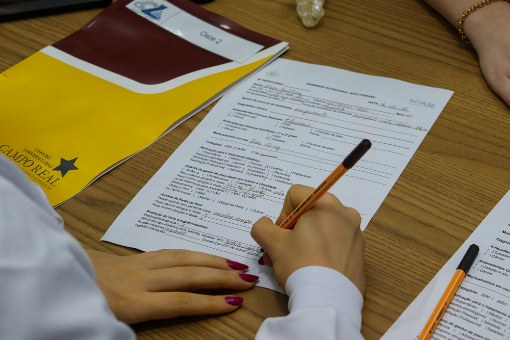 Os acadêmicos do curso de Nutrição participaram de uma atividade prática nas OSCEs para aplicação da anamnese nutricional, etapa fundamental no atendimento ao paciente.
