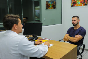 Inicialmente, o conteúdo foi trabalhado em sala de aula e, na sequência, os estudantes colocaram o aprendizado em prática, vivenciando a condução da conversa, a postura profissional e a importância da escuta atenta durante o atendimento.