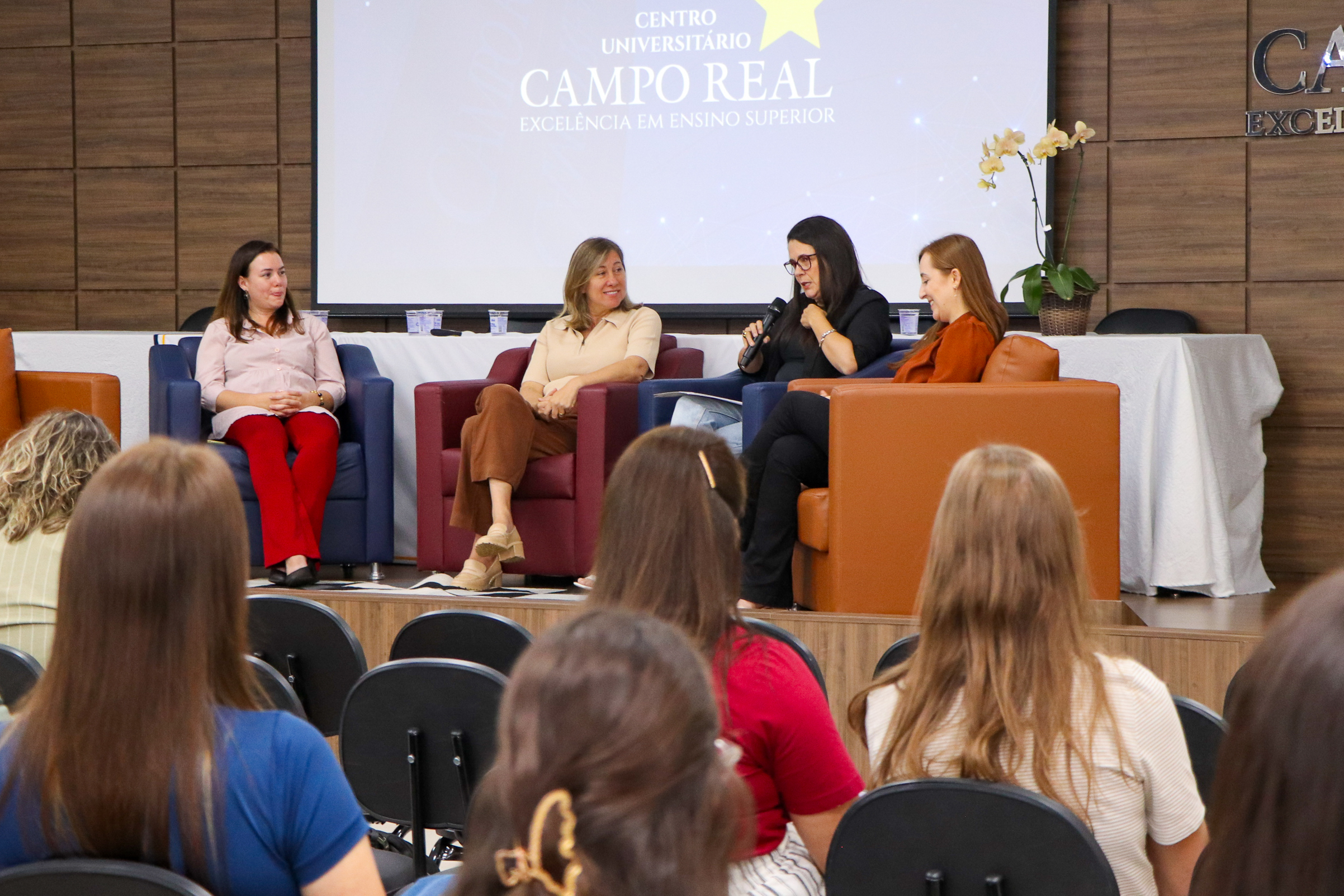 O encontro contou com a participação de Adriane Feijó Evangelista, Roseli de Oliveira Machado, Joseane Carla Schabarum e Rubiana Mara Mainardes, que compartilharam vivências, desafios e conquistas ao longo de suas trajetórias profissionais.
