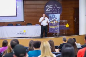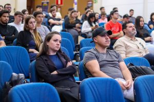 Entre os destaques da programação, os acadêmicos participaram de uma palestra especial com profissionais veteranos da área contábil, que compartilharam suas trajetórias, desafios e conquistas. Os convidados Ronaldo Veroneze, Eva Schran e Isabely Kaveski trouxeram relatos valiosos que conectaram a teoria vivenciada em sala de aula à prática profissional do dia a dia.