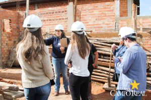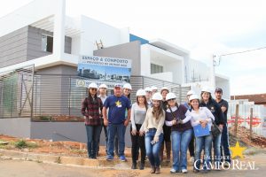 Os alunos de Arquitetura e Urbanismo, realizaram no dia 23 de maio, visita à obra. Uma atividade complementar de capacitação e experimentação na atividade prática. A obra visitada trata-se de um empreendimento imobiliário, com 4 sobrados residenciais, em 4 fases distintas de construção. Esta situação favoreceu a visita no sentido de otimizar a compreensão, podendo ser apreciados desde os materiais de acabamento utilizados nos sobrados em fase de acabamento, como os materiais brutos combinados nas fundações e estruturação das paredes e coberturas. A ideia nasceu da necessidade de visualização da aplicação prática de situações representadas no desenho técnico de Arquitetura. Assim, foi oportunizado aos alunos uma atividade técnica prática, importante para o reforço da aprendizagem teórica. A experiência foi positiva e a partir desta aproximação entre a teoria e a prática, muitos alunos já demonstraram interesse em novas visitas, que serão agendadas com o propósito de reforçar o conteúdo pedagógico.