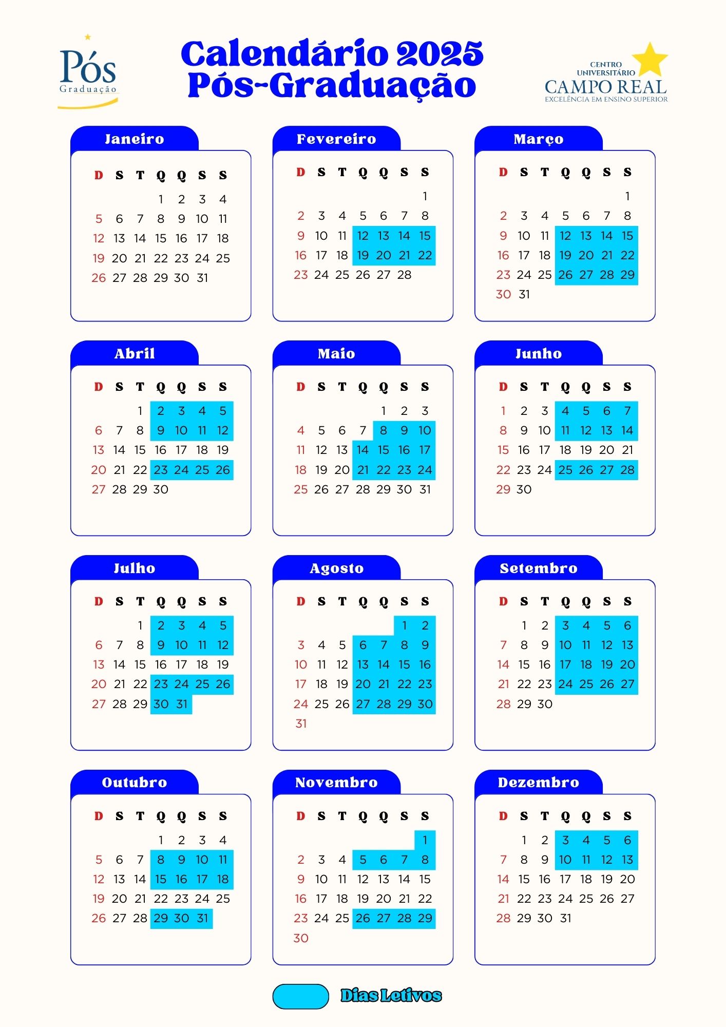 Com objetivo de oferecer o que há de mais atual no mercado, o Centro Universitário Campo Real, em parceria com o Instituto de Pesquisa e Extensão Campo Real (IPEX), proporciona ao profissional mais exigente, cursos de pós-graduação lato sensu (Especialização e MBA – Master in Business Administration), capacitação e treinamentos em todas as áreas do conhecimento.